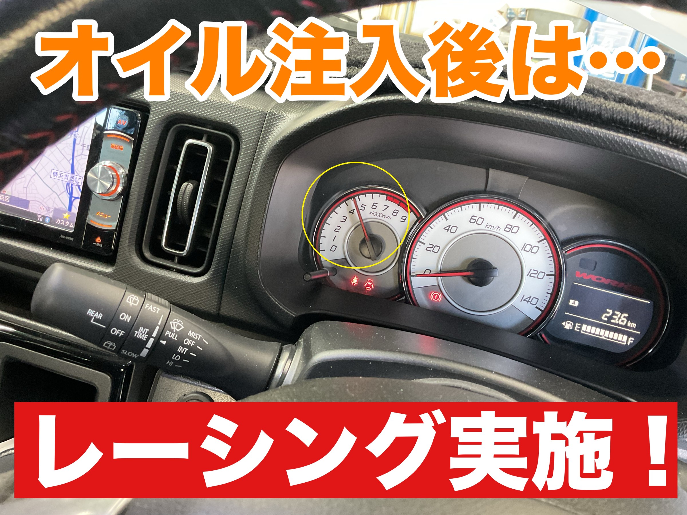 少しエンジンの回転数を上げて『レーシング』を施します。(黄色〇印)