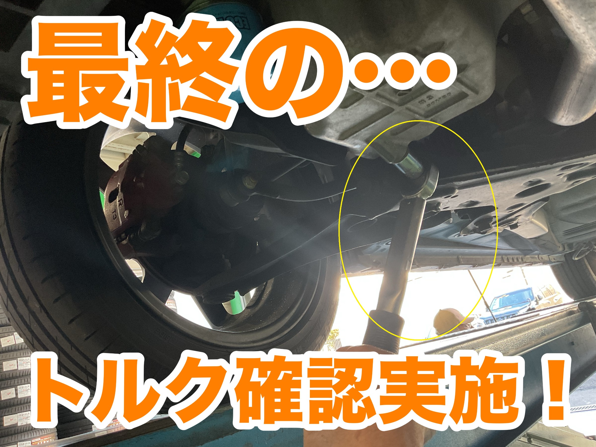 ↓↓↓ 『レーシング』後 車両をリフトアップし オイルエレメントの再チェックを行います。(黄色〇印)
