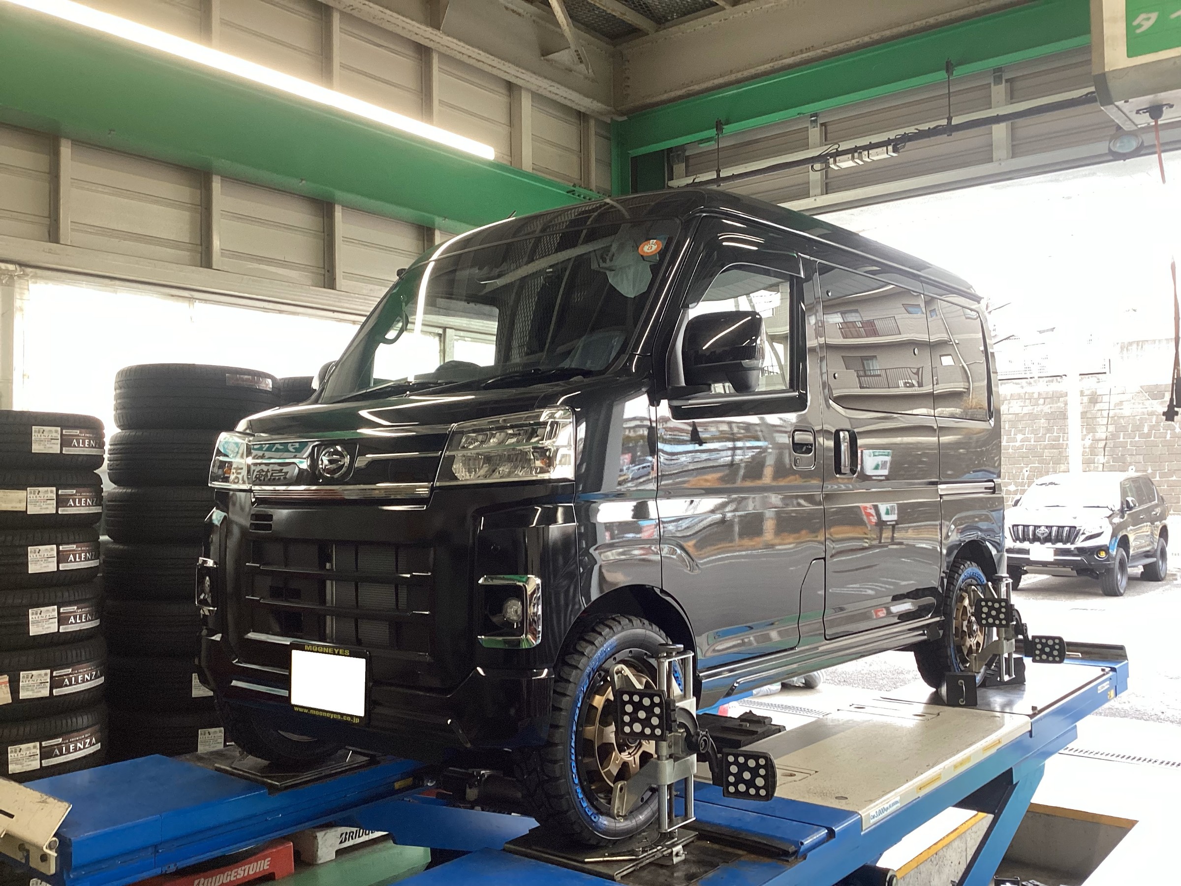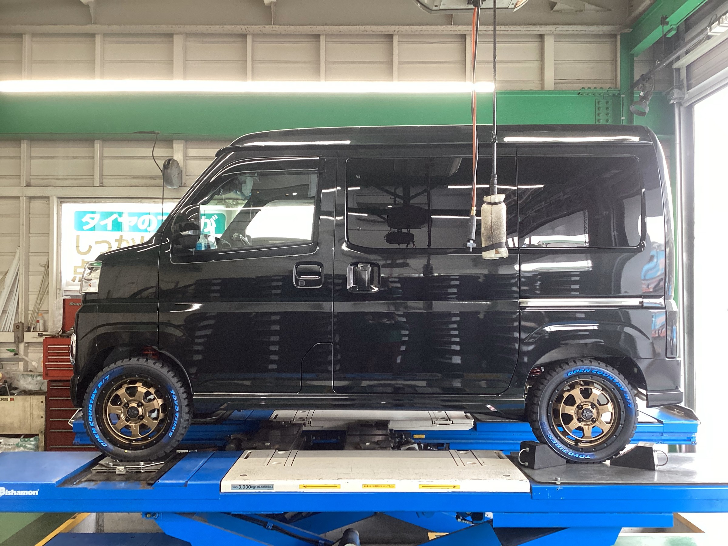 を納車そのままにリフトアップ作業です。