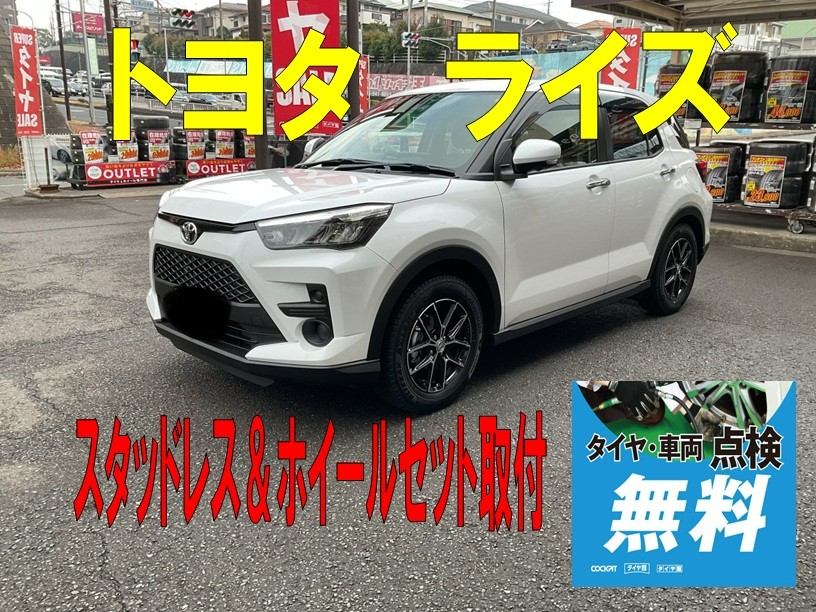 皆さんこんにちは(^O^) タイヤ館港北ニュータウン店のホームページをご覧頂き有難う御座います(^_^)/ スタッドレスタイヤ&ホイールセットの取付事例をご案内します(^O^)/ 取り付けた車両は 『トヨタ ライズ』 『ライズ』は『ダイハツ ロッキー』と兄弟車となっており 『ガソリン車』と『ハイブリ...