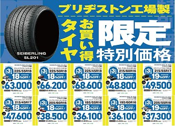 ブリヂストン工場製タイヤを『今だけ』数量限定スペシャルプライスでご提供! 【期間】12月05日(木)~12月22日(日) ■ブリヂストン工場製タイヤ セイバーリング 最大19%OFF! ※通常店頭表示価格より ★185/55R16 スイフト、フィット、インサイト など ★195/60R16 イスト、セレナ、ラフェスタ、ランデ...