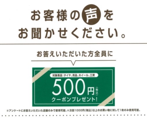 お手持ちのスマホからQRコードを読み取って頂き、アンケートにお答え頂きますと次回から使えるお得なクーポンをプレゼントしています♪