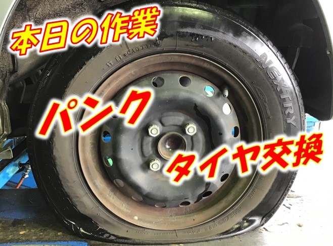ご来店いただいた時には左後ろのタイヤがパンクして潰れてしまっていました