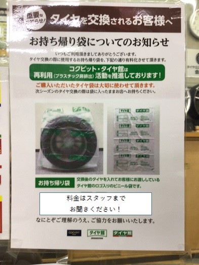 タイヤ館のお持ち帰り袋が有料化となりました。