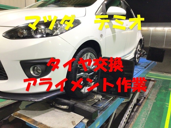 マツダ デミオ タイヤ交換+アライメント作業させていただきました(^O^)/