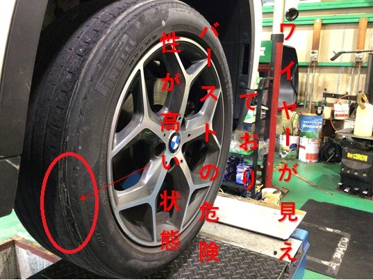 外側がワイヤーが出てしまっており、交換が必要な状態でした。