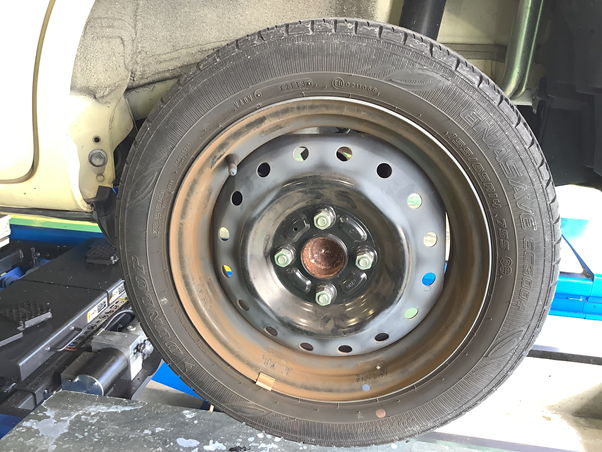 本日は、ダイハツ ムーヴコンテのタイヤ交換&アライメント作業をさせていただきました。