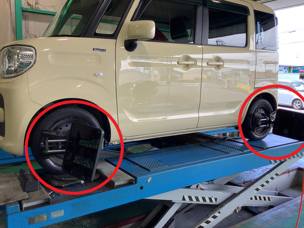 左前と右前のタイヤを基準値に戻せばアライメント作業は完了です。