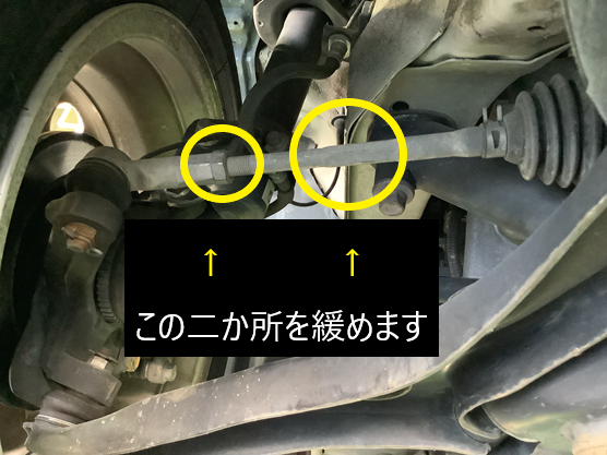 右のほうのナット個所を緩め、