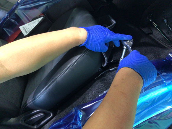 シート下にある、シートベルトセンサーを抜きシートを外します。