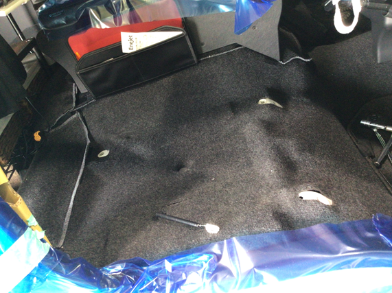 ホディを保護する保護材を張って細心の注意を払って作業を進めていきます。