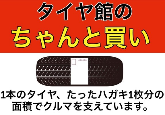 クルマは、大切な方の命を乗せています。1本のタイヤはたったハガキ1枚分の面積しか路面と接していません。