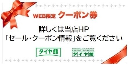 ただいま、タイヤ館高蔵寺ではお得なWEBクーポンをご用意しています!