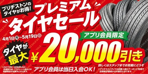 4/1~5/19までプレミアムタイヤセール開催しております!!!