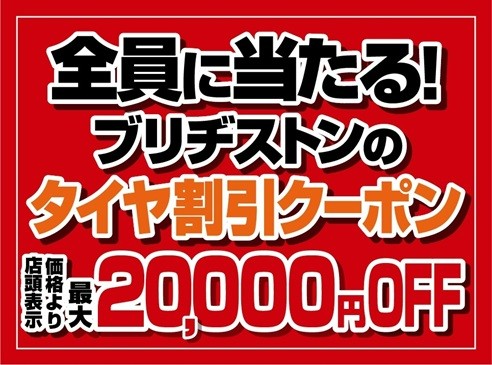 もれなく、ブリヂストンタイヤが4本最大20,000円引きクーポンがもらえます!