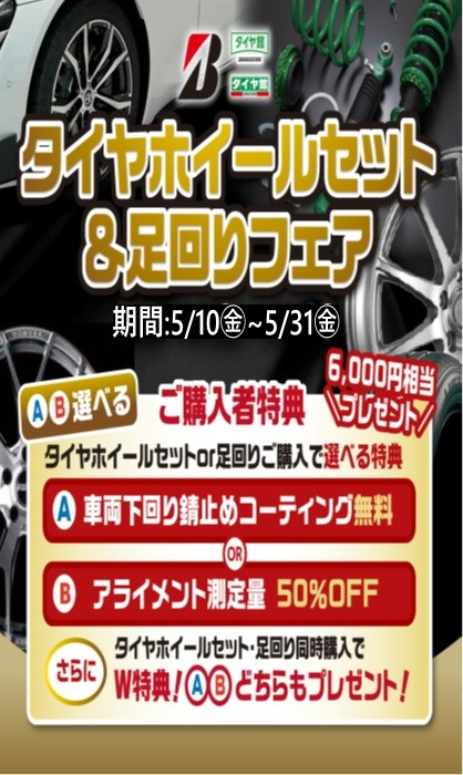 お知らせ】5/10(金)~5/31(金) タイヤホイールセット&足回りフェア開催決定!!