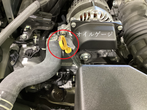こちらがオイルの油糧を見るオイルレベルゲージになります、