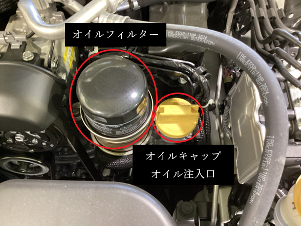赤丸の個所が今回オイル交換する際に触る箇所になります。