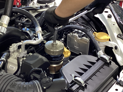エレメントを外したら、新しいエレメントをつけて、オイルキャップを外し、