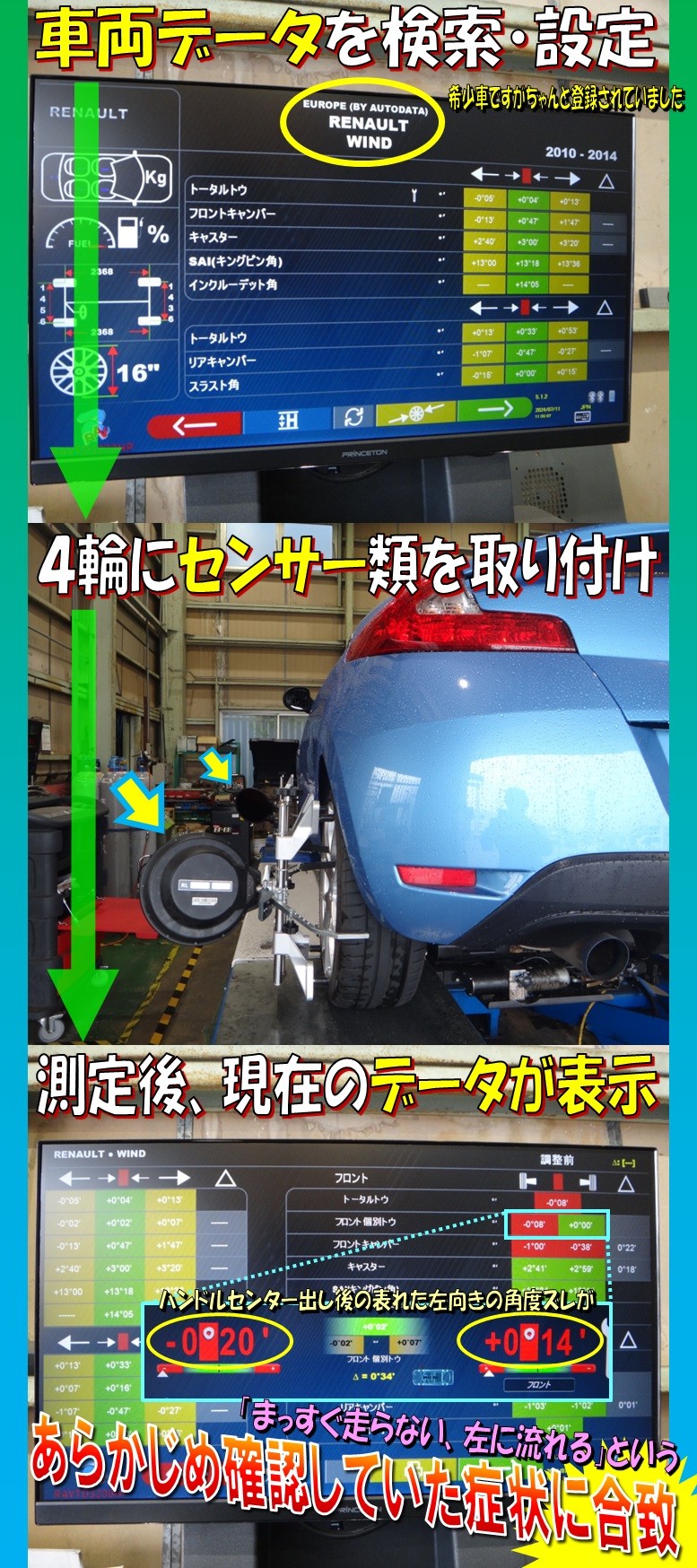 ルノー・ウインド 「アライメント測定・調整」作業です!