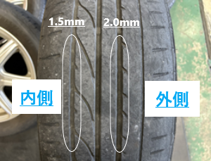 写真のように溝の減り具合が片一方に偏ります