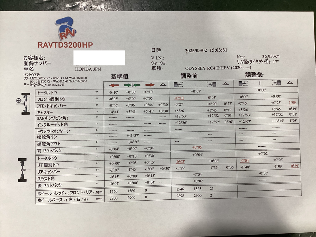 車の健康診断(アライメント測定)をして