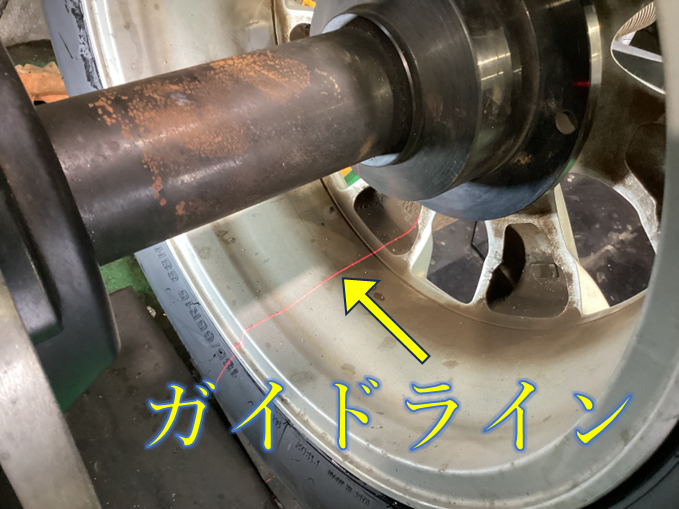 充填が終わりましたらホイールとタイヤの接合部分赤枠のところ