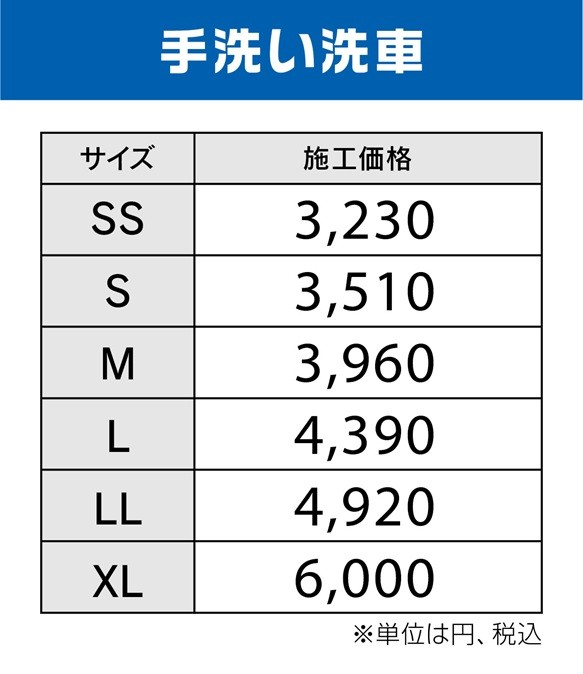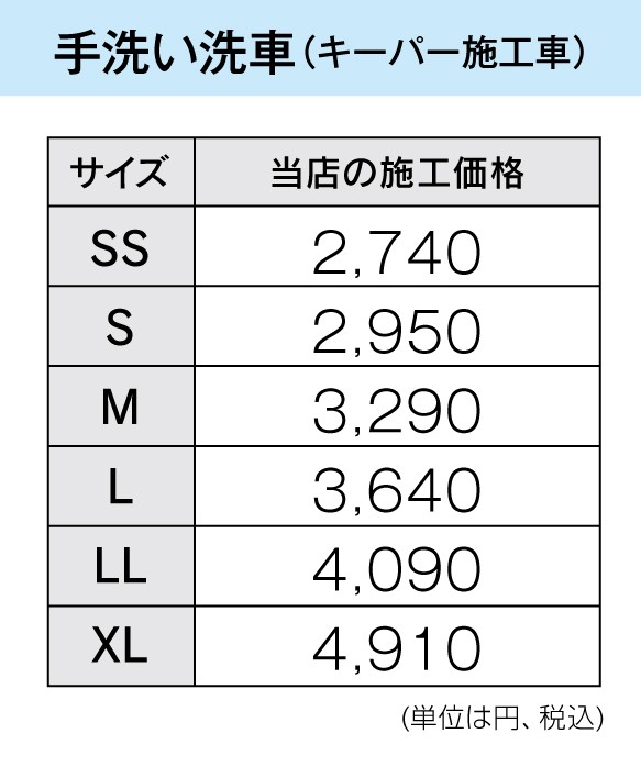 コーティング料金はお客様のお車のサイズによって変動していきます