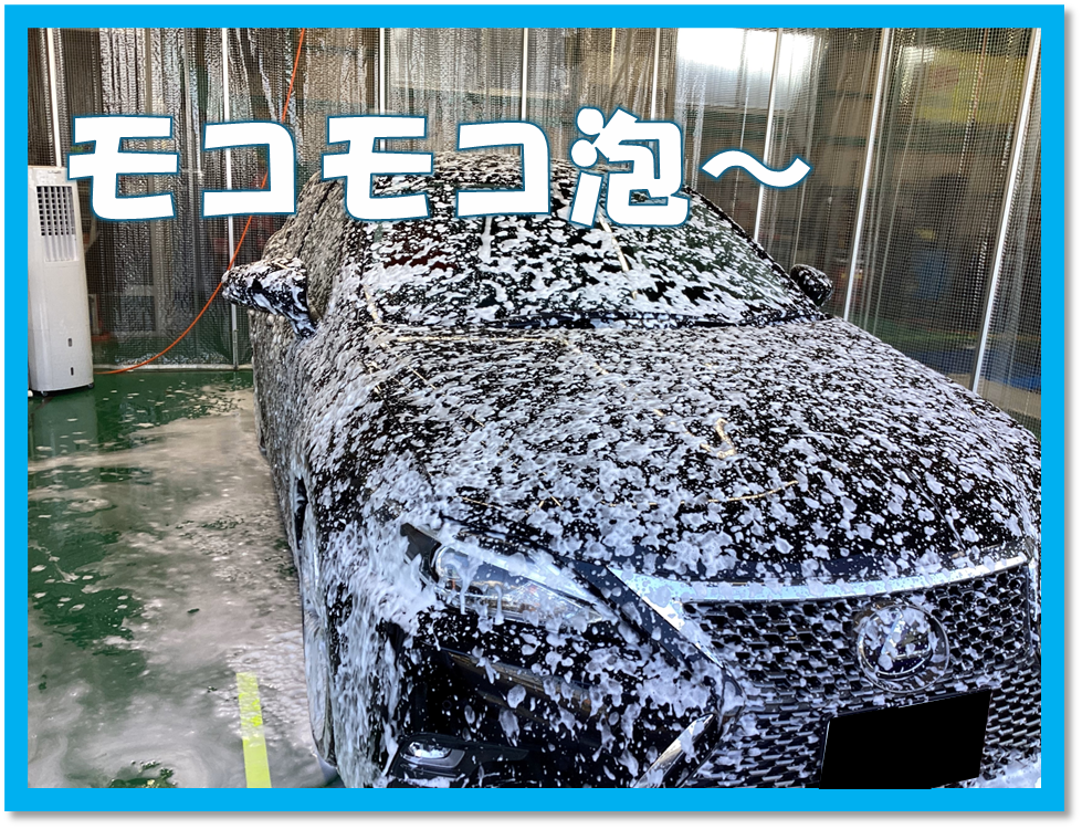 次に車全体にモコモコの泡をかけて洗車を行います