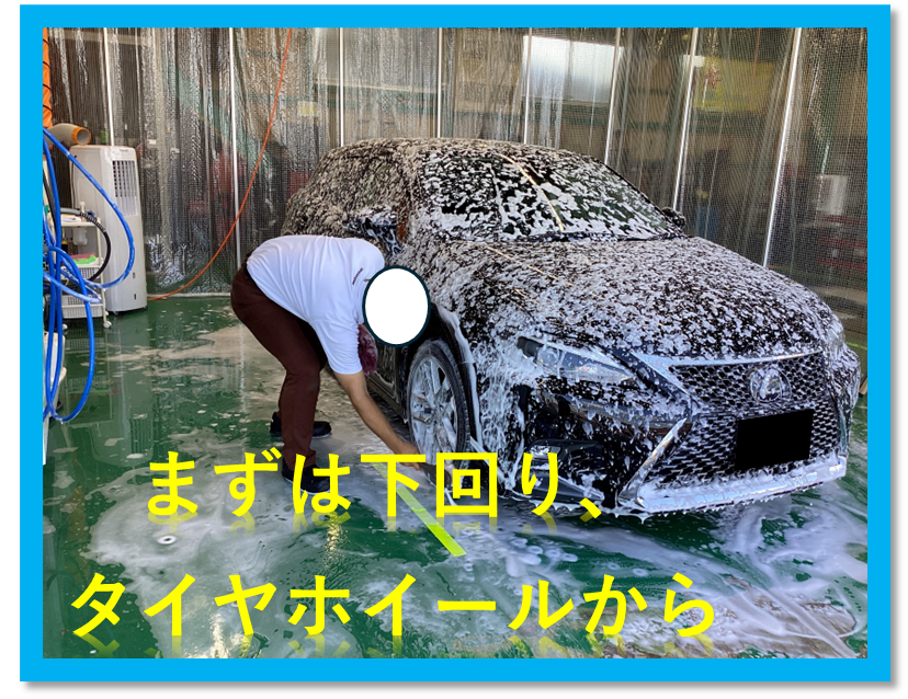 下準備が終わりましたら、予備洗いを下回りから行い