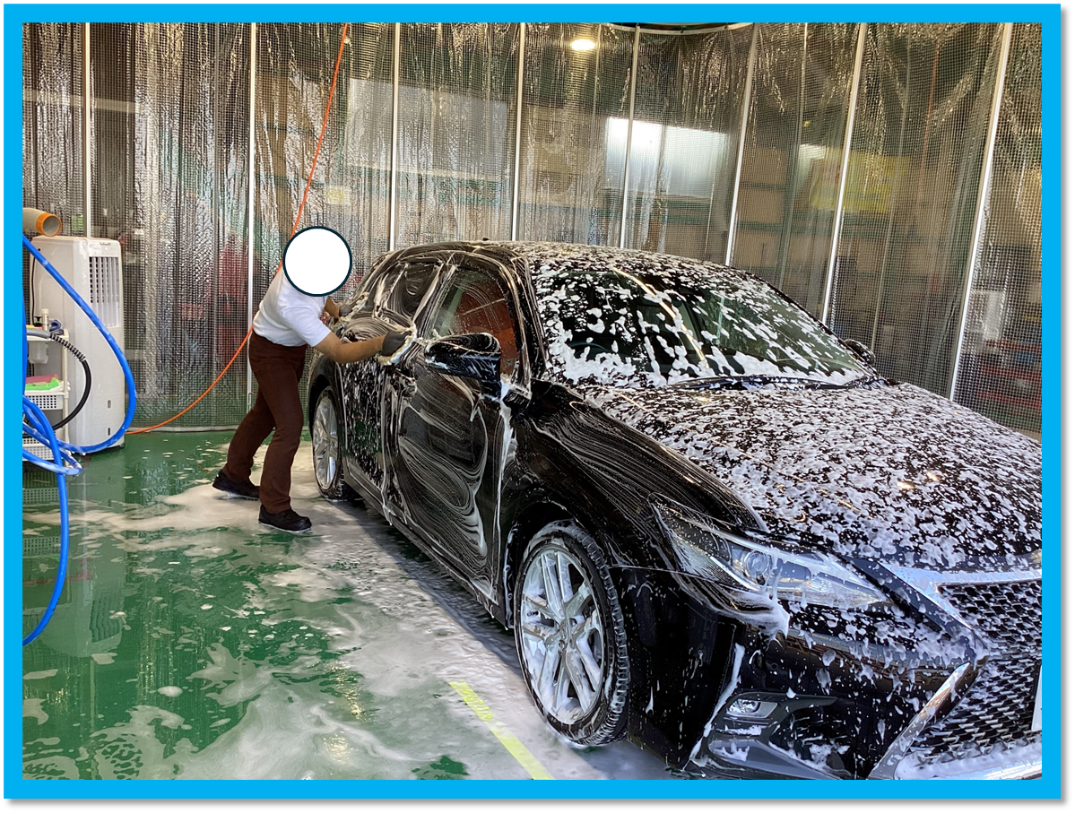 もう一度泡洗車を行い、ボディに付着したケミカル『爆ツヤ』を完全に洗い流します