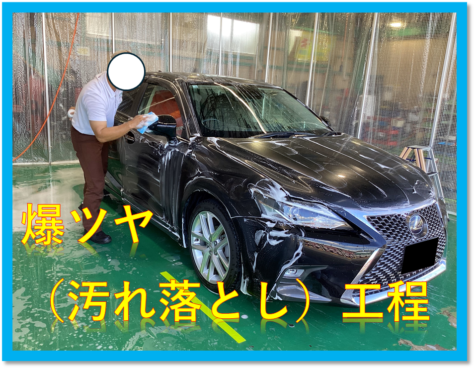 【爆ツヤ】といったケミカルで汚れ落としと、表面の脱脂を行います