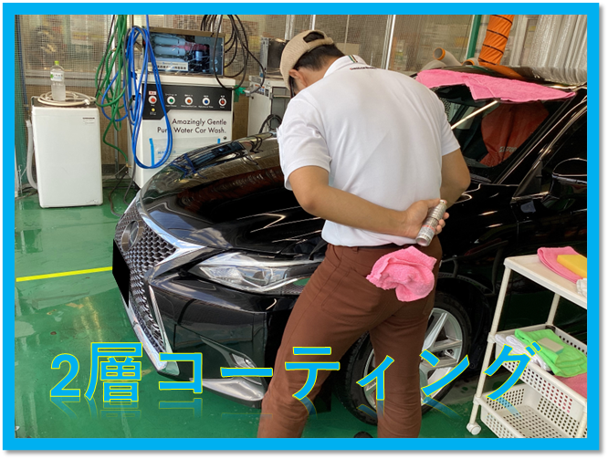 洗車後に車全体に純水をかけてたら、コーティング施工までの下処理が完了します!