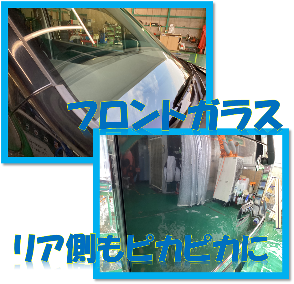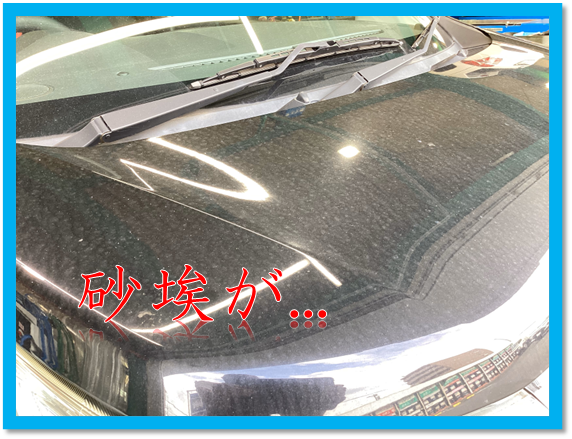 フロントガラスにはワイパーの届かない個所に砂がたまっていました(; ・`д・´)