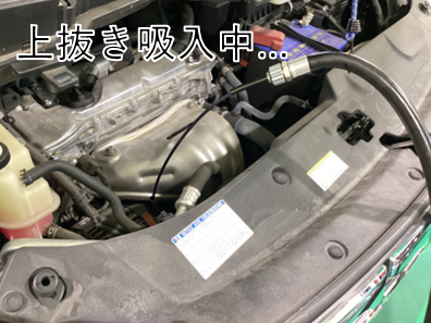 抜く場所としてはオイルレベルゲージが刺さっていた場所から抜きます
