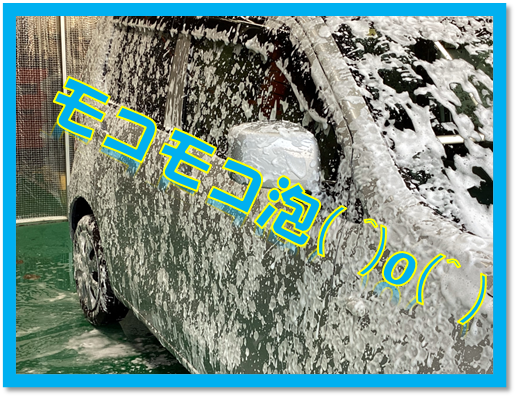 いつも通り全体に柔らかいモコモコとした泡をかけて洗車いたします