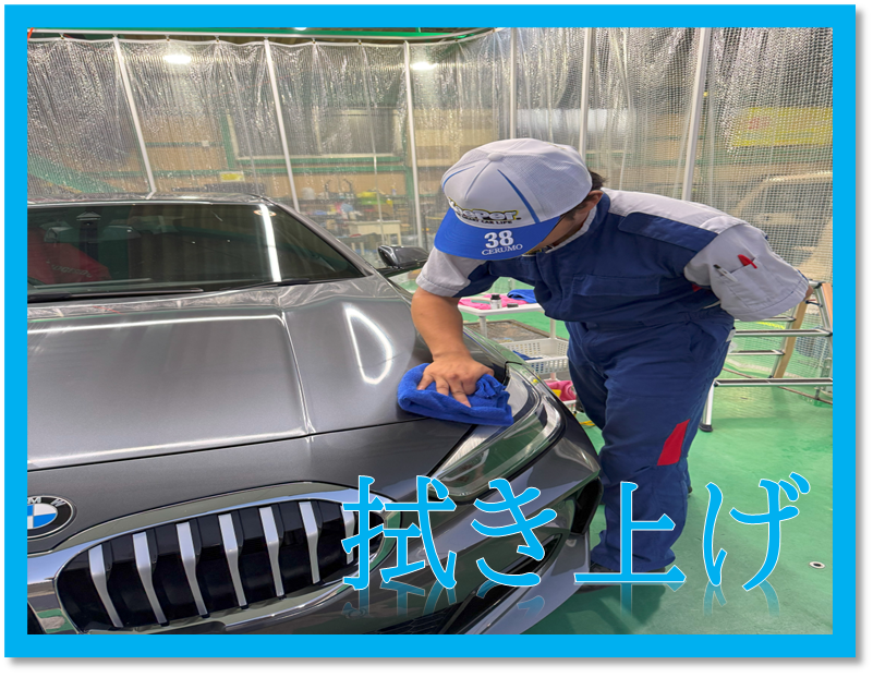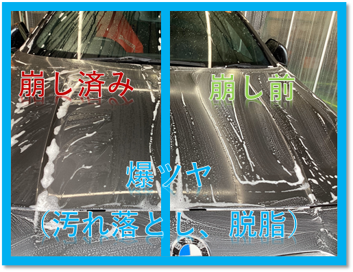 爆ツヤを塗布し、汚れを浮かし、崩しで汚れを落とすような流れですね(*'▽')