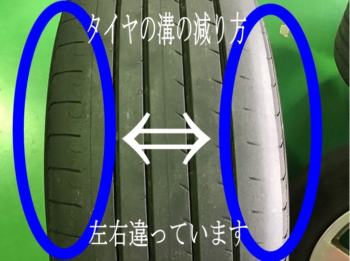 【1】タイヤの片側が偏って減っている
