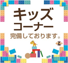 込み合う事も予想されますが、当店ではキッズコ-ナ-を待合に完備しています。
