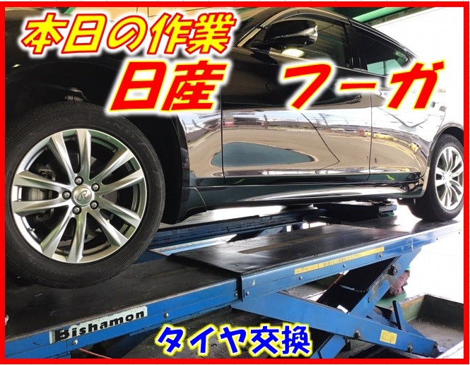 本日は日産のフ-ガのタイヤ交換です。