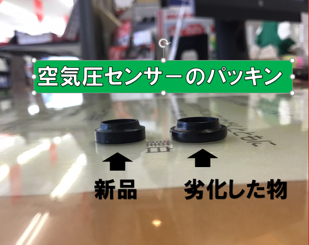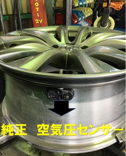 こちらのお車はアルミホイ-ルに純正の空気圧センサ-が装着されています。