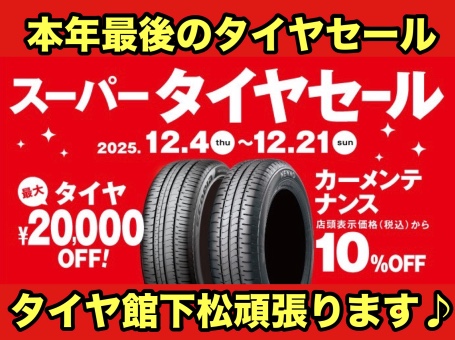 ただいま…ブリヂストンタイヤをお得に買える!スーパータイヤセールを開催中♪