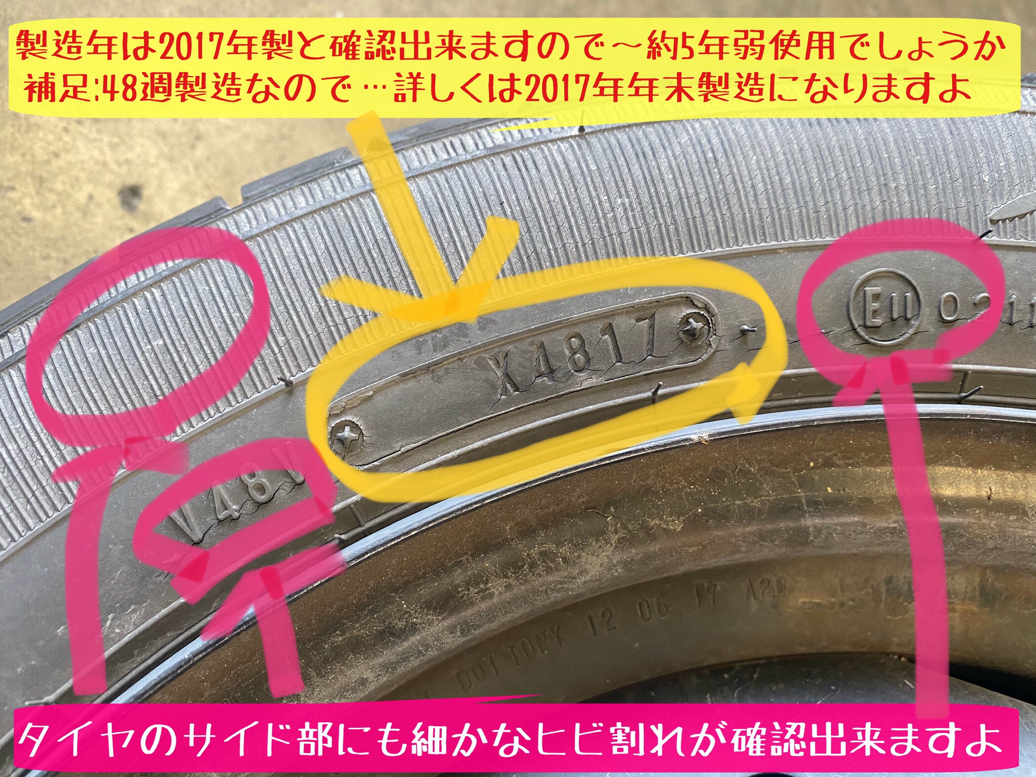 タイヤに細かなヒビ割れが発生しており…スリップサインもはっきり確認出来ますよ!