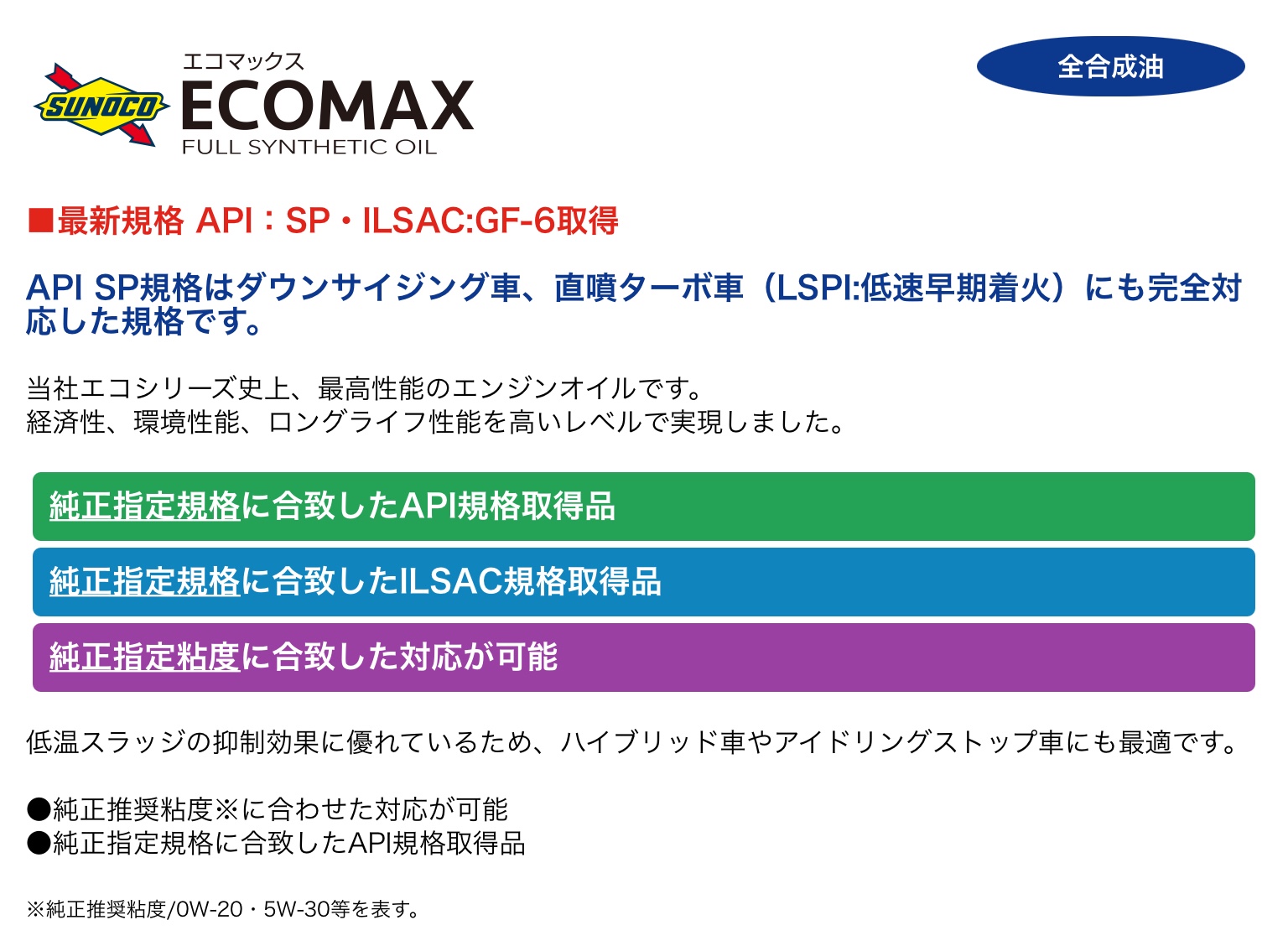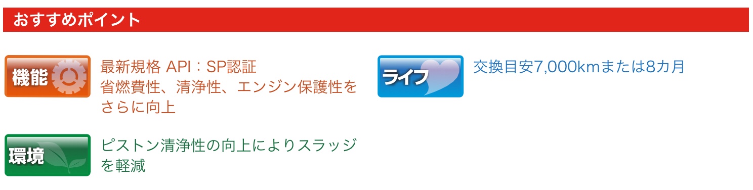 API SP規格はダウンサイジング車、直噴ターボ車(LSPI:低速早期着火)にも完全対応した規格です。