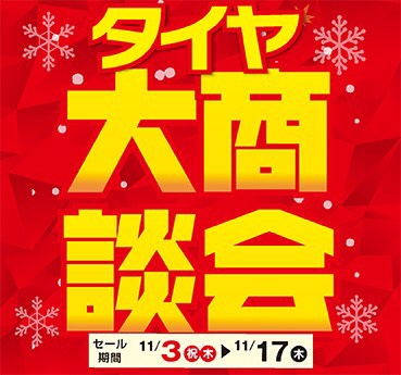 只今、タイヤ大商談会を開催中です。※11月17日まで