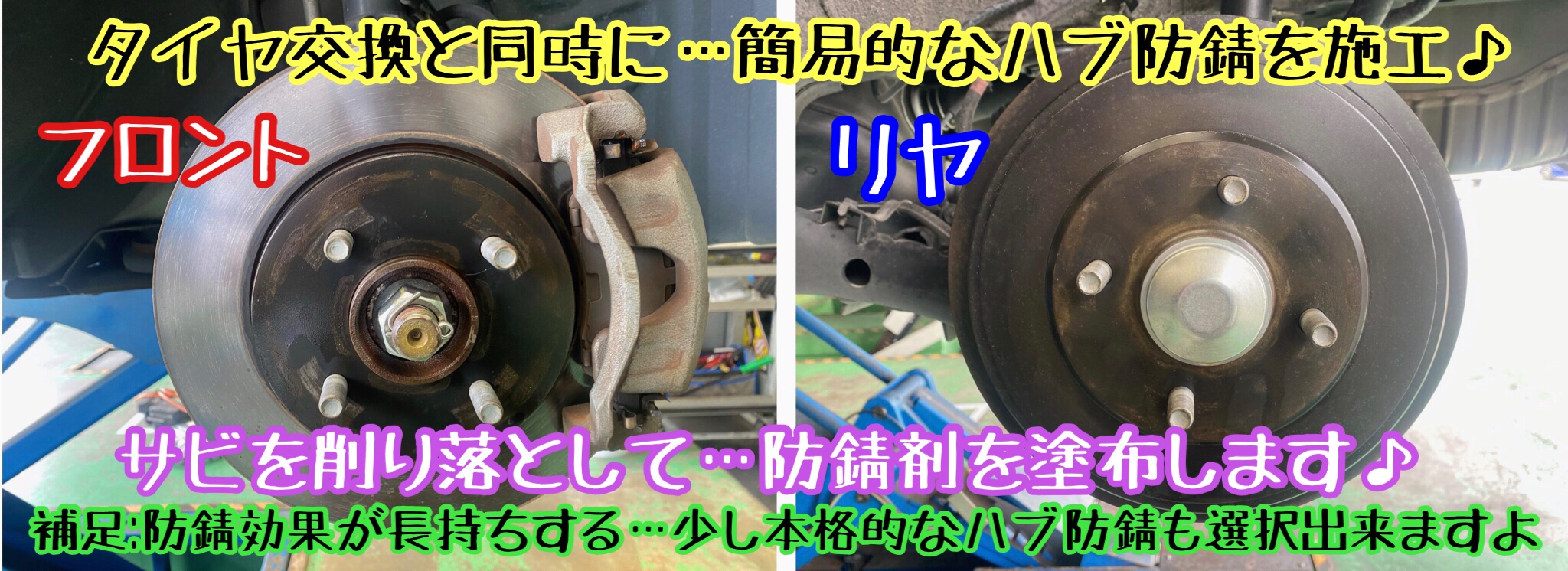 補足:ハブ防錆にも簡易的な施工から〜少し本格的な施工までありますので…詳しくはスタッフまで相談して下さいね。