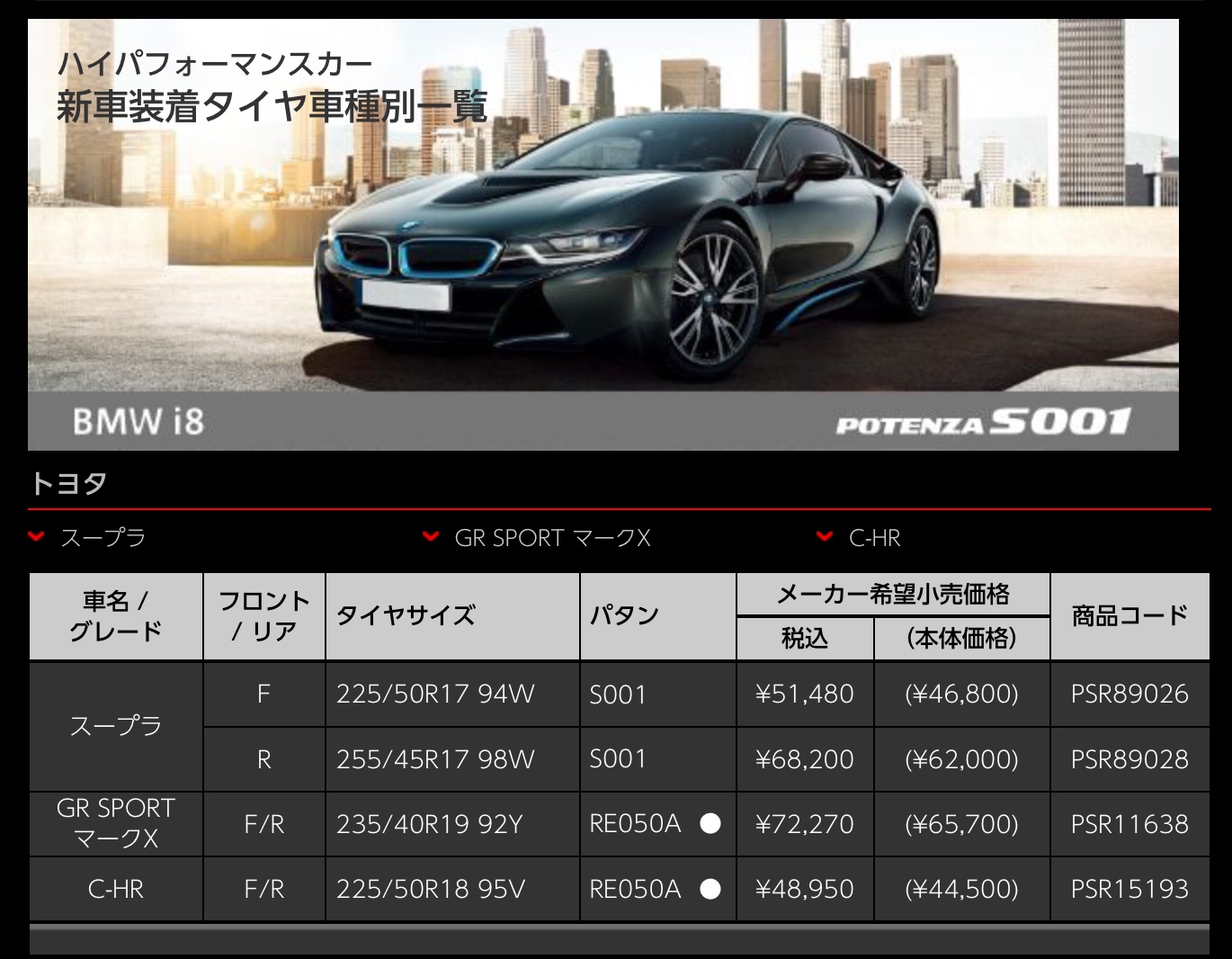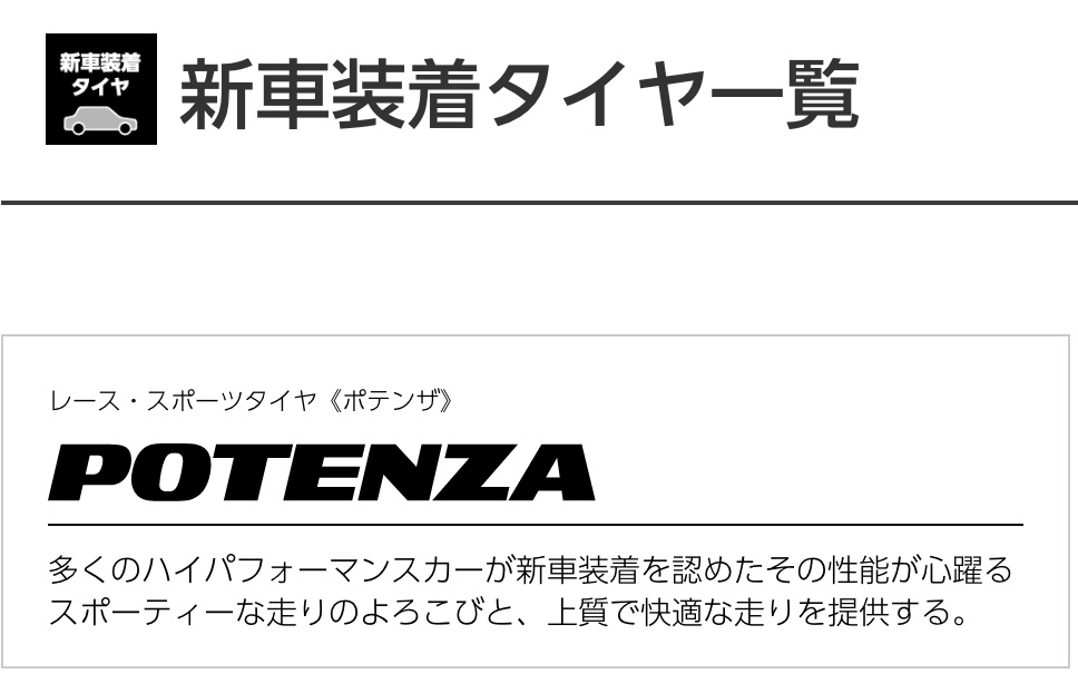 スポーツ系タイヤをお求めの方には…純正装着タイヤをおすすめ♪