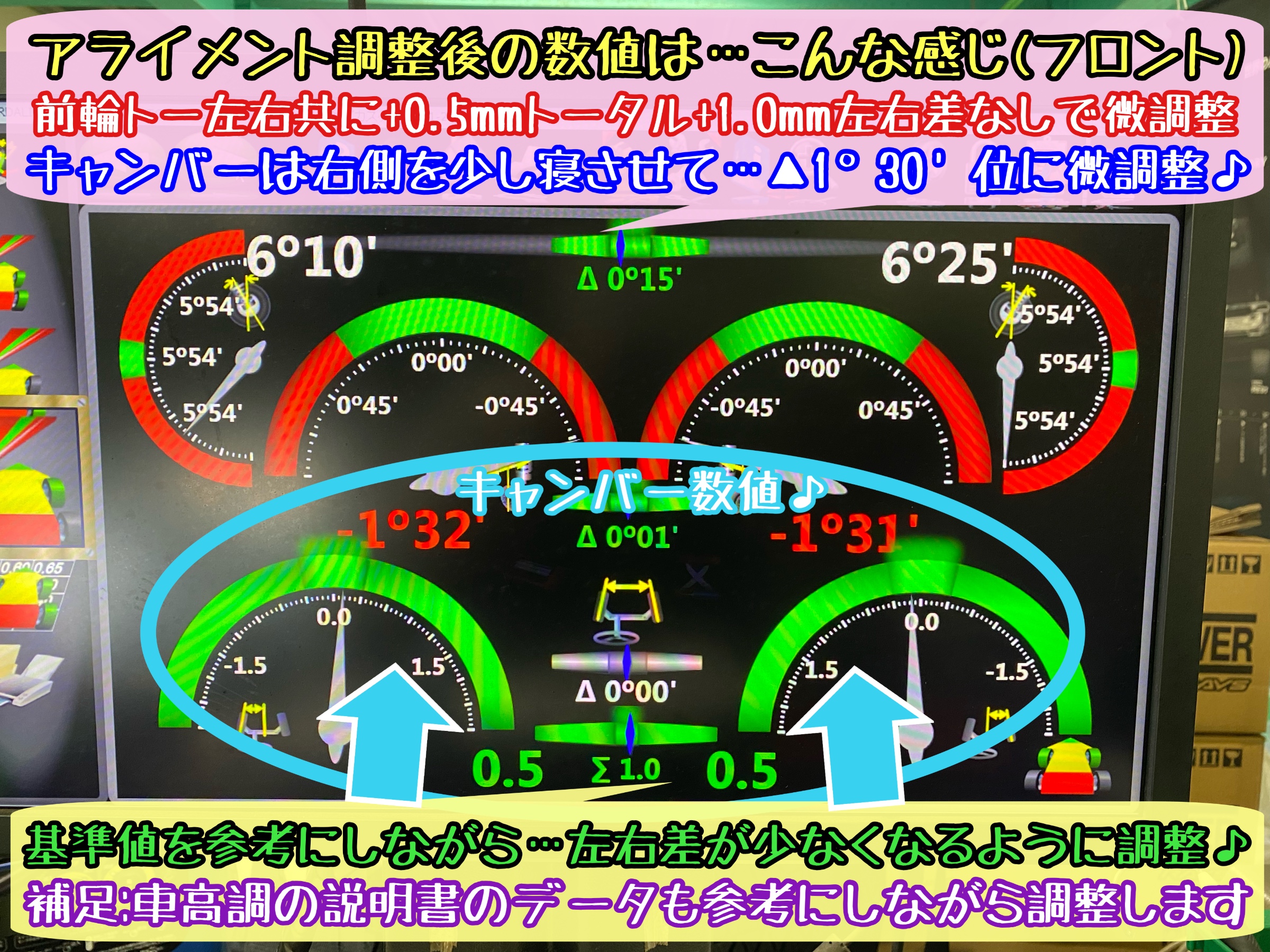 アライメント調整後の数値は…こんな感じ♫