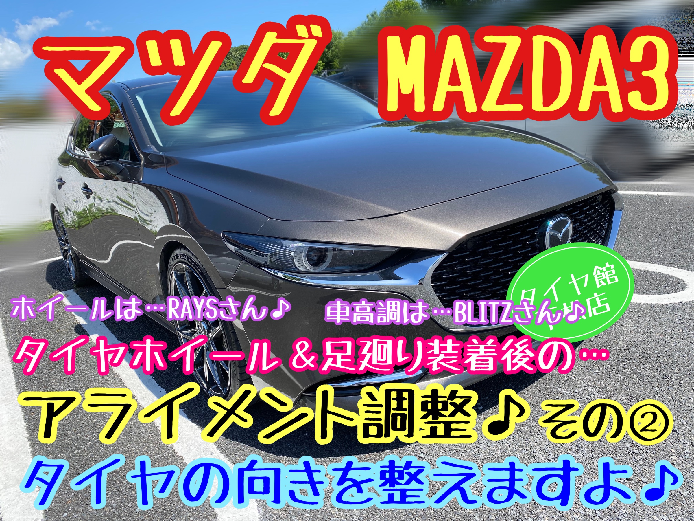 下松市 周南市周辺で マツダ マツダ3 MAZDA3 タイヤ交換 ホイール交換 オイル交換 バッテリー交換 ワイパー交換 エアコンフィルター交換 アライメント調整 タイヤ履き替え 脱着 付け替え モボックス など検討されている方は タイヤ館下松店 スタッフまで気軽に相談して下さいね♪