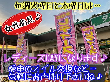 下松市や周南市周辺の女性の皆さま必見〜毎週火曜日と木曜日は…タイヤ館下松店はレディースDAYになります。